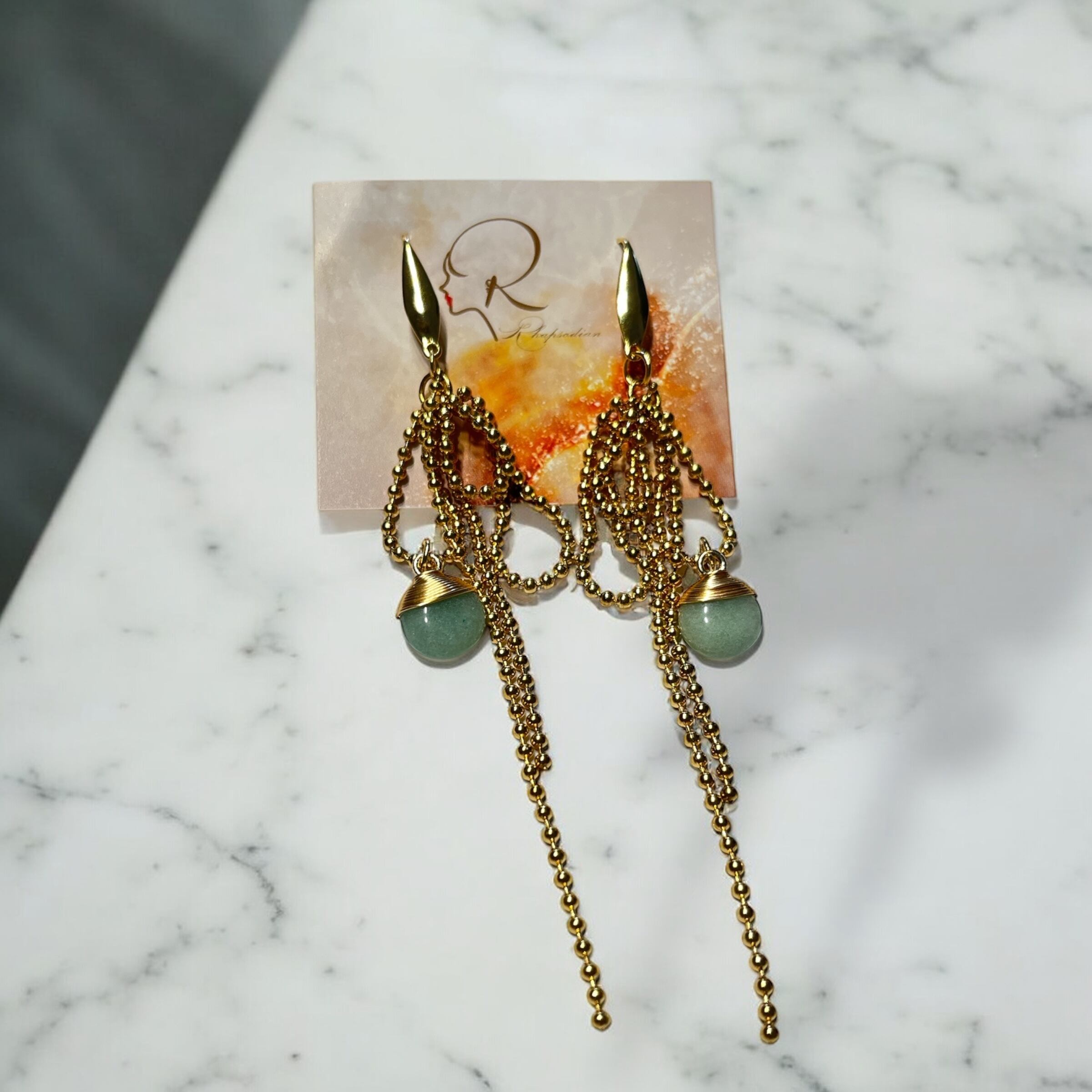 天然石アベンチュリン ボールチェーンタッセル ピアス・イヤリング