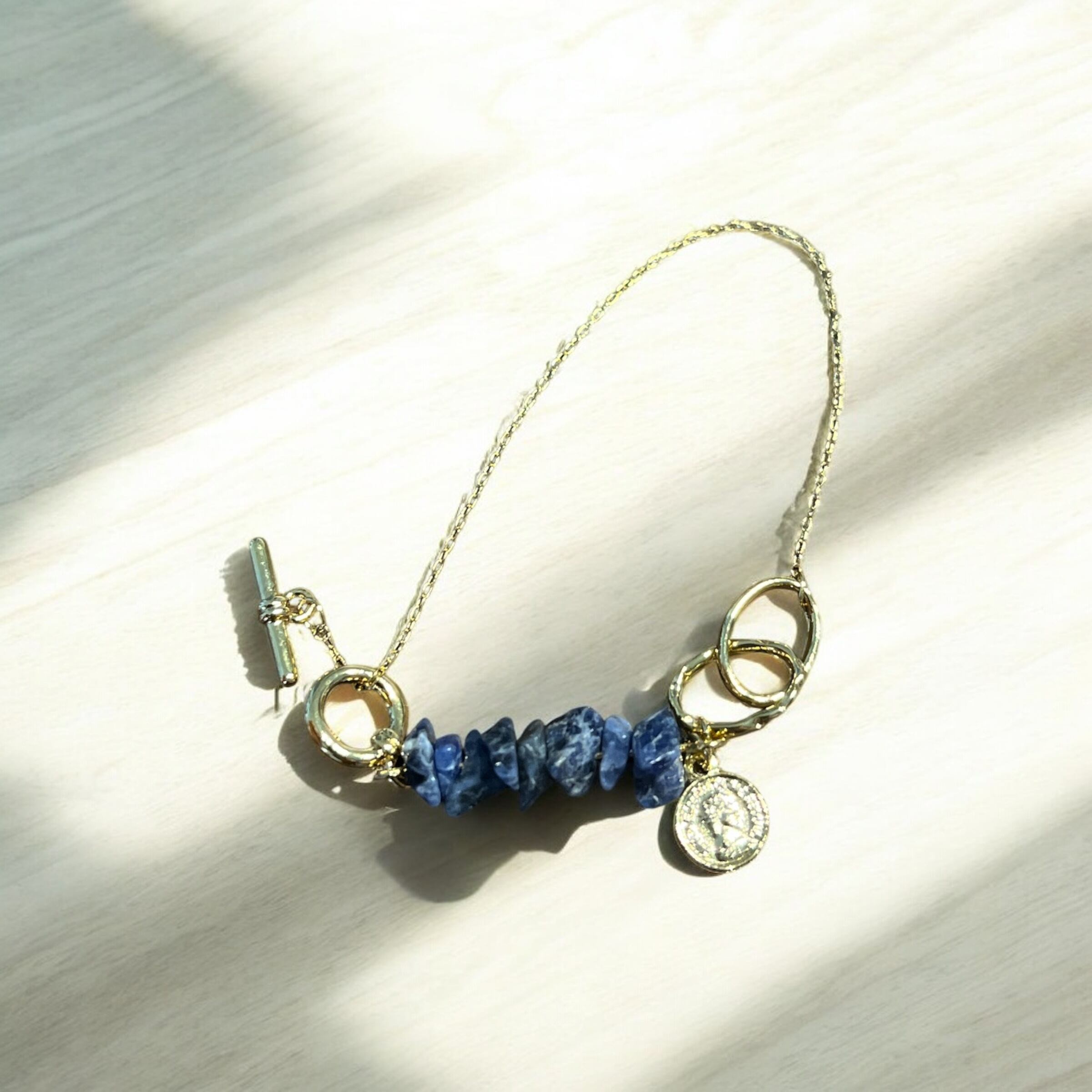【Gold】天然石 ブルー マンテルブレスレット