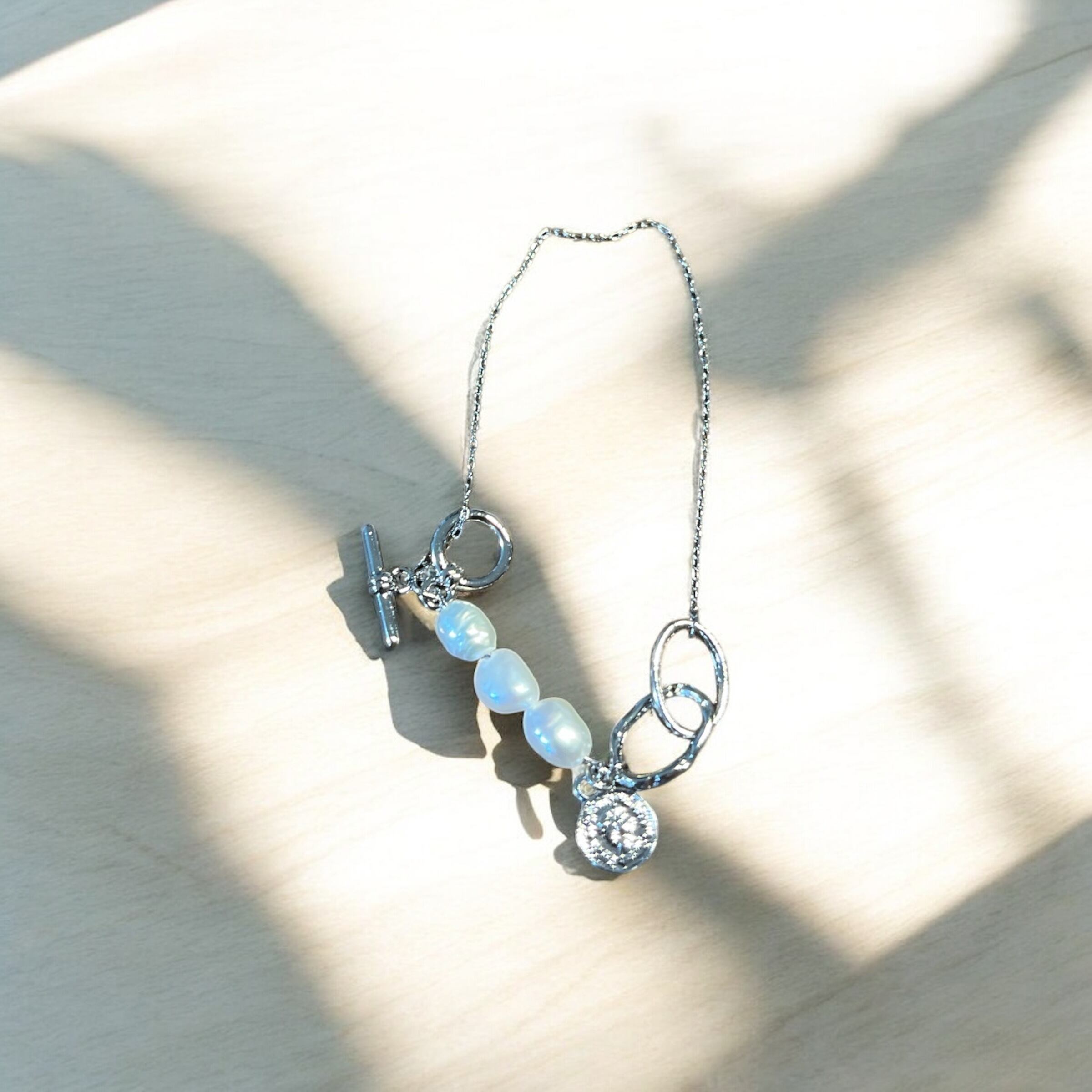 【Silver】天然石 淡水パール マンテルブレスレット