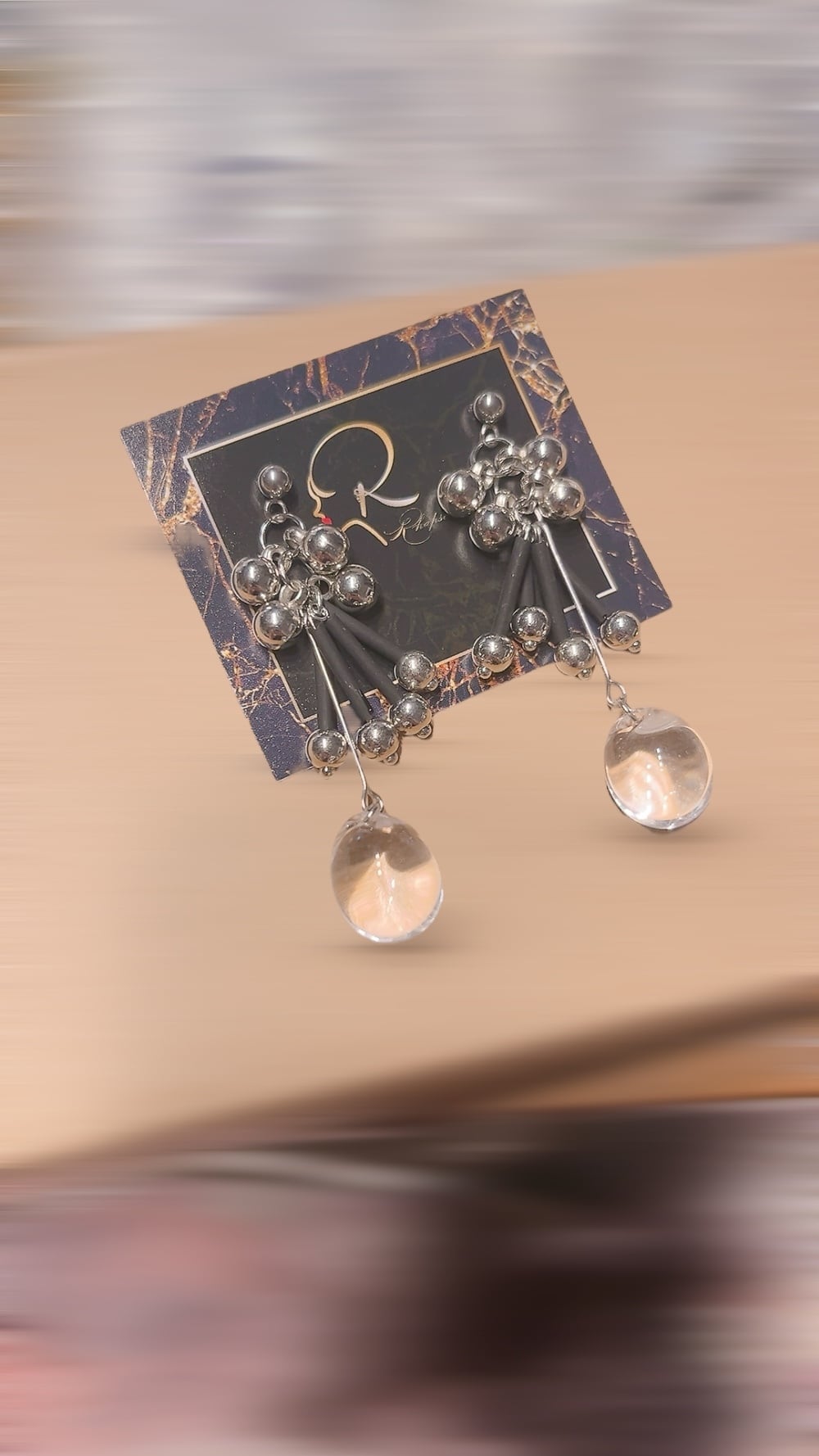 クリアしずく マットブラック竹ビーズ ピアス・イヤリング