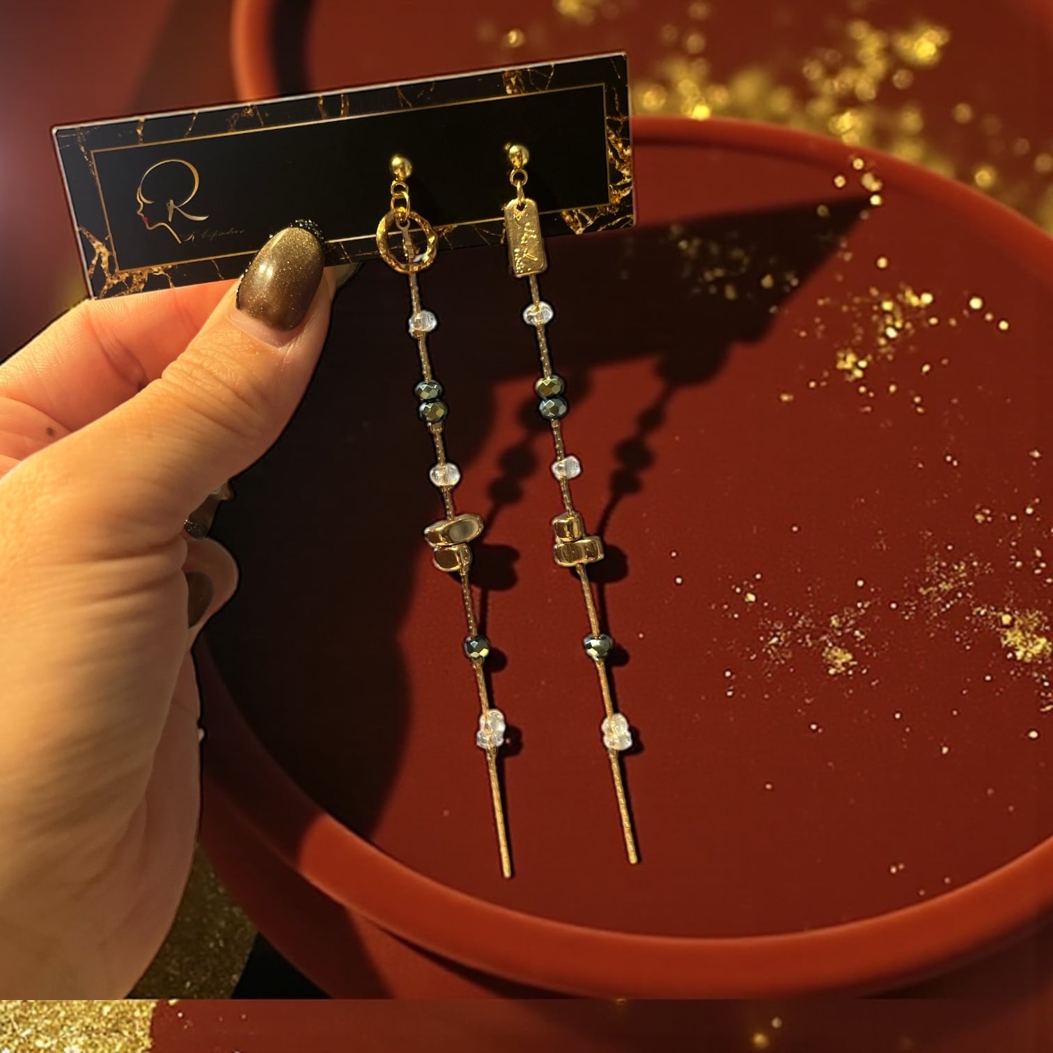 ゴールド グリーンビーズ ロング ピアス・イヤリング