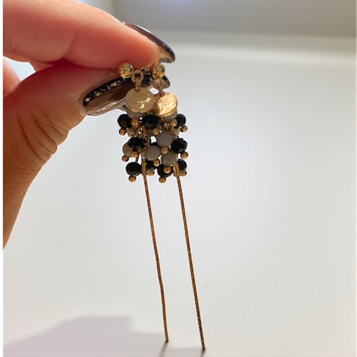 ゴールド くすみブルー×ブラック ピアス・イヤリング