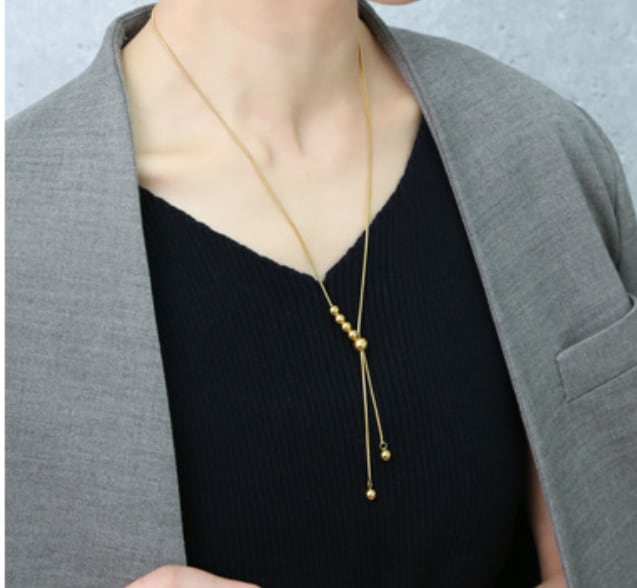 お好きな位置にポイントを持ってこられる大人気のスライドネックレス。