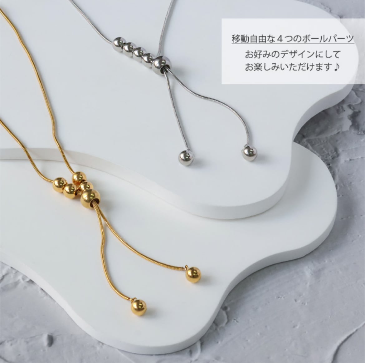 スライドの位置とボールパーツの移動で自在にアレンジ可能なので、 お好きなデザインにしていろんなコーディネートに合わせていただけます。