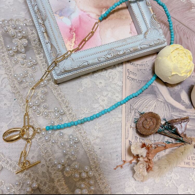 合成ターコイズ マンテルネックレス