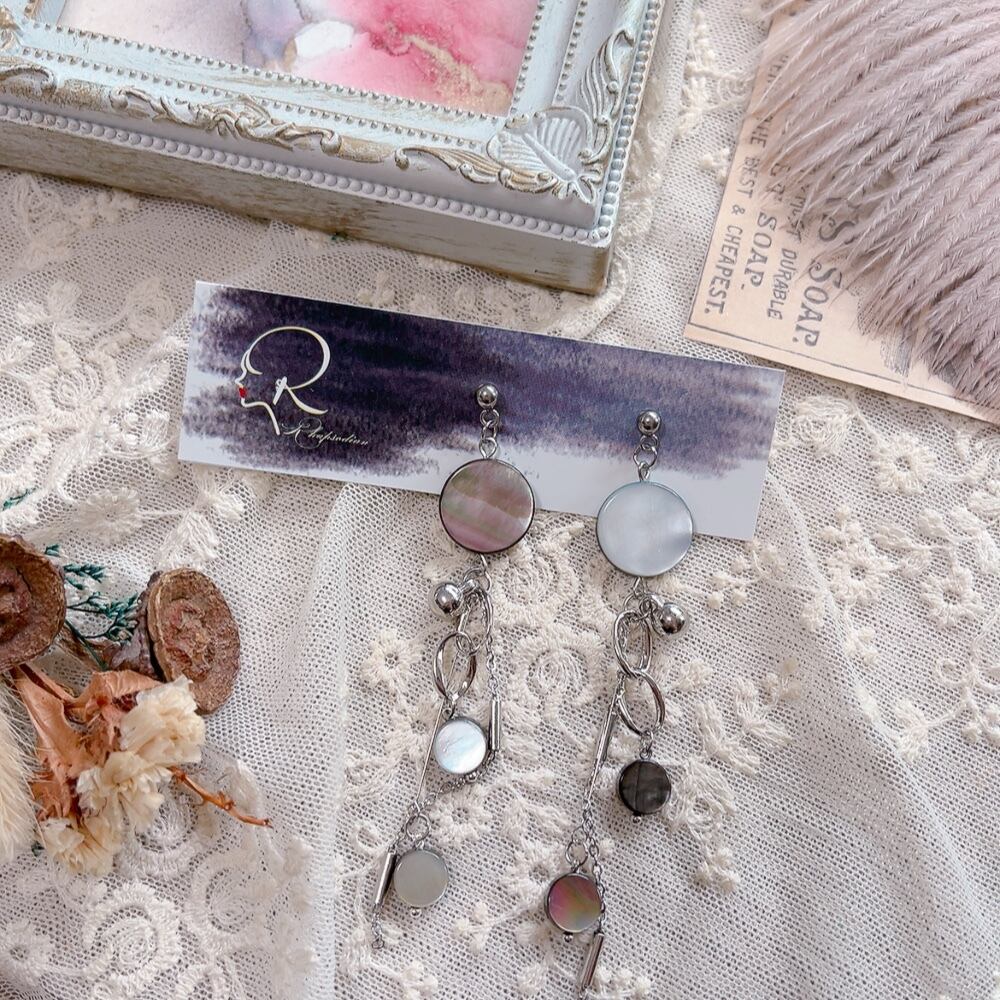 ブラックシェル コイン型 シルバーピアス