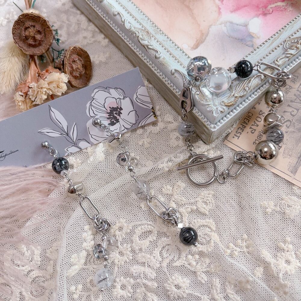 天然石ブラックルチル ブレスレット+ピアス セット