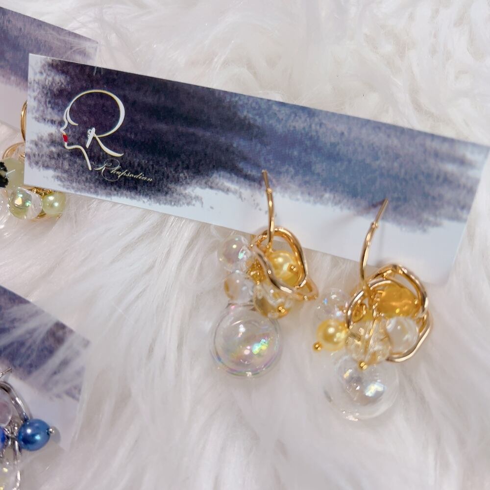 【イエロー】ウォータードーム ピアス・イヤリング