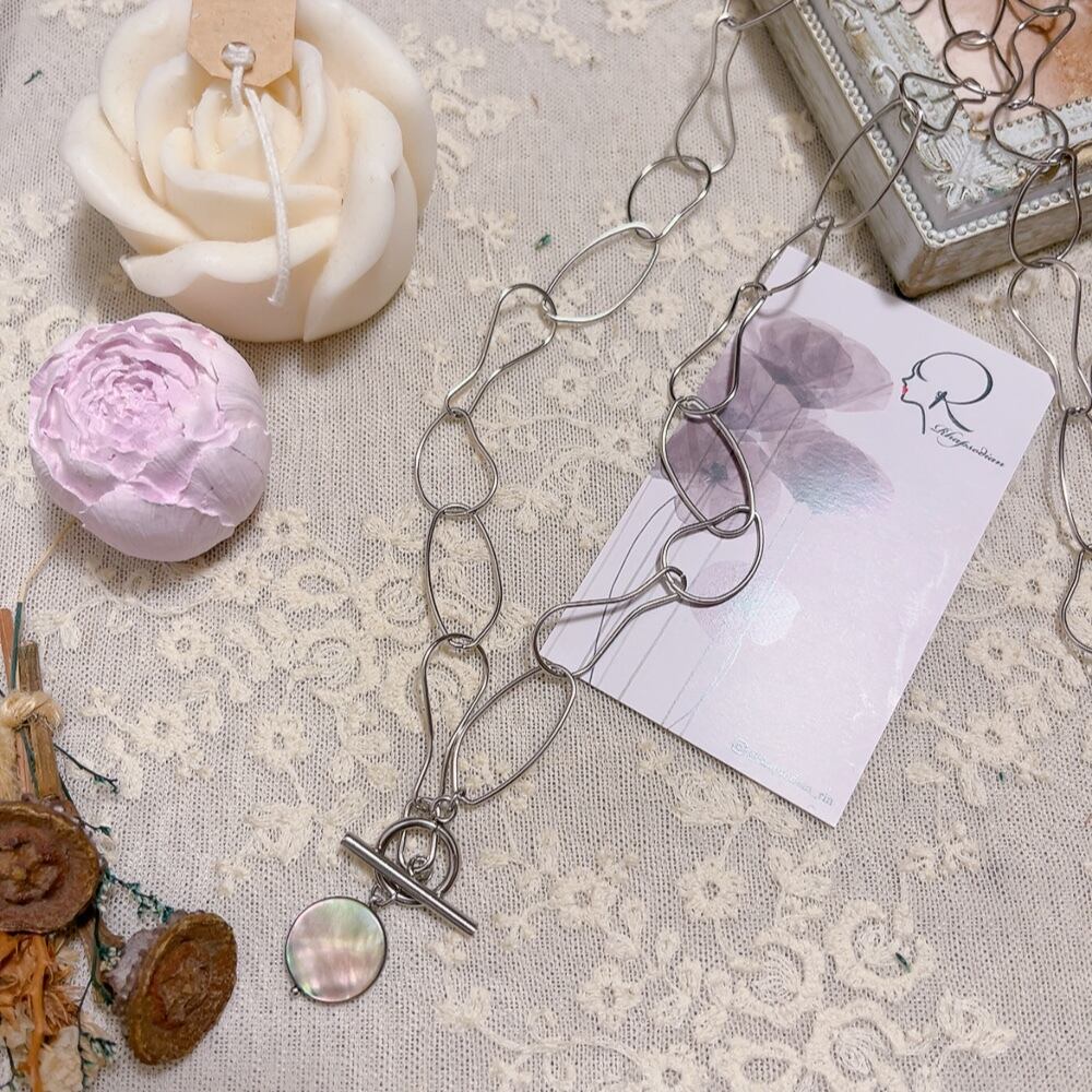 サークルブラックシェル デザインチェーン マンテルネックレス
