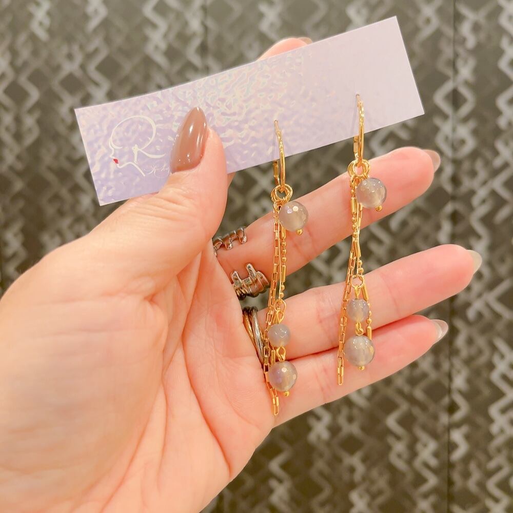 【ちょい変更ありかも】天然石瑪瑙 グレー 幾通りピアス(イヤリング)