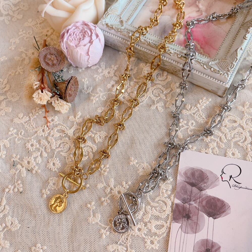 【Gold】コイン付き デザインチェーン マンテル ネックレス