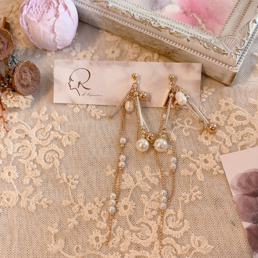 淡水パール入り ビーズ&チェーンタッセル ピアス・イヤリング