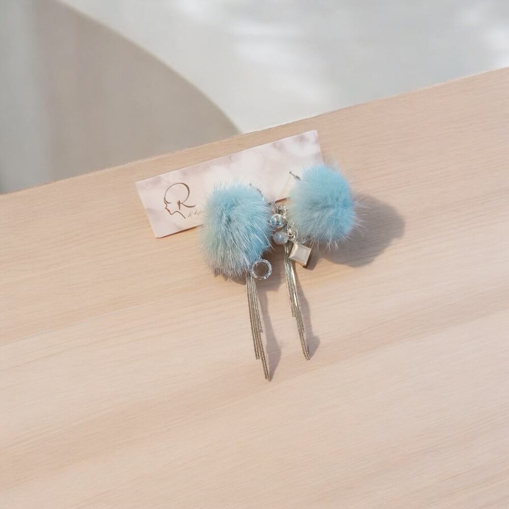 【グリーンアッシュ】付け替え可 ファー ピアス・イヤリング