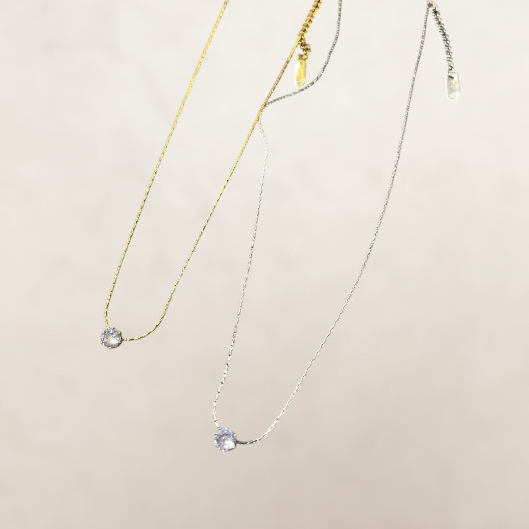 【Gold】Cz シンプル1粒 ネックレス