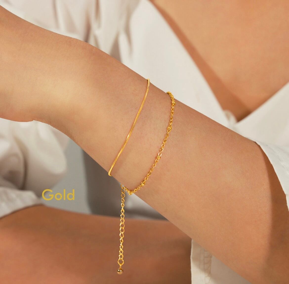 さりげなく輝く2連チェーンは手首を美しくみせてくれます。
