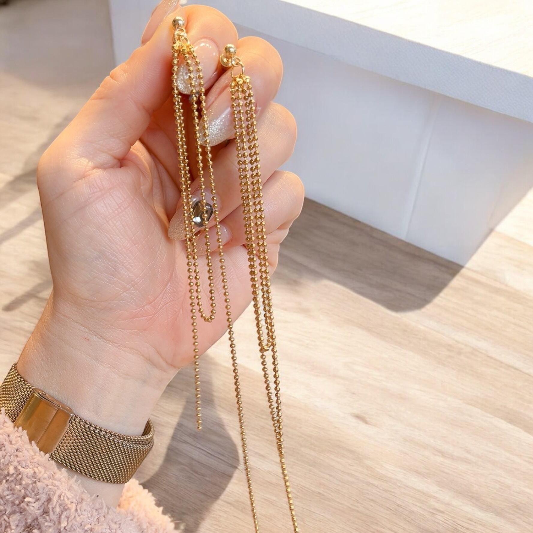 【Gold】ボールチェーン ロング ピアス・イヤリング